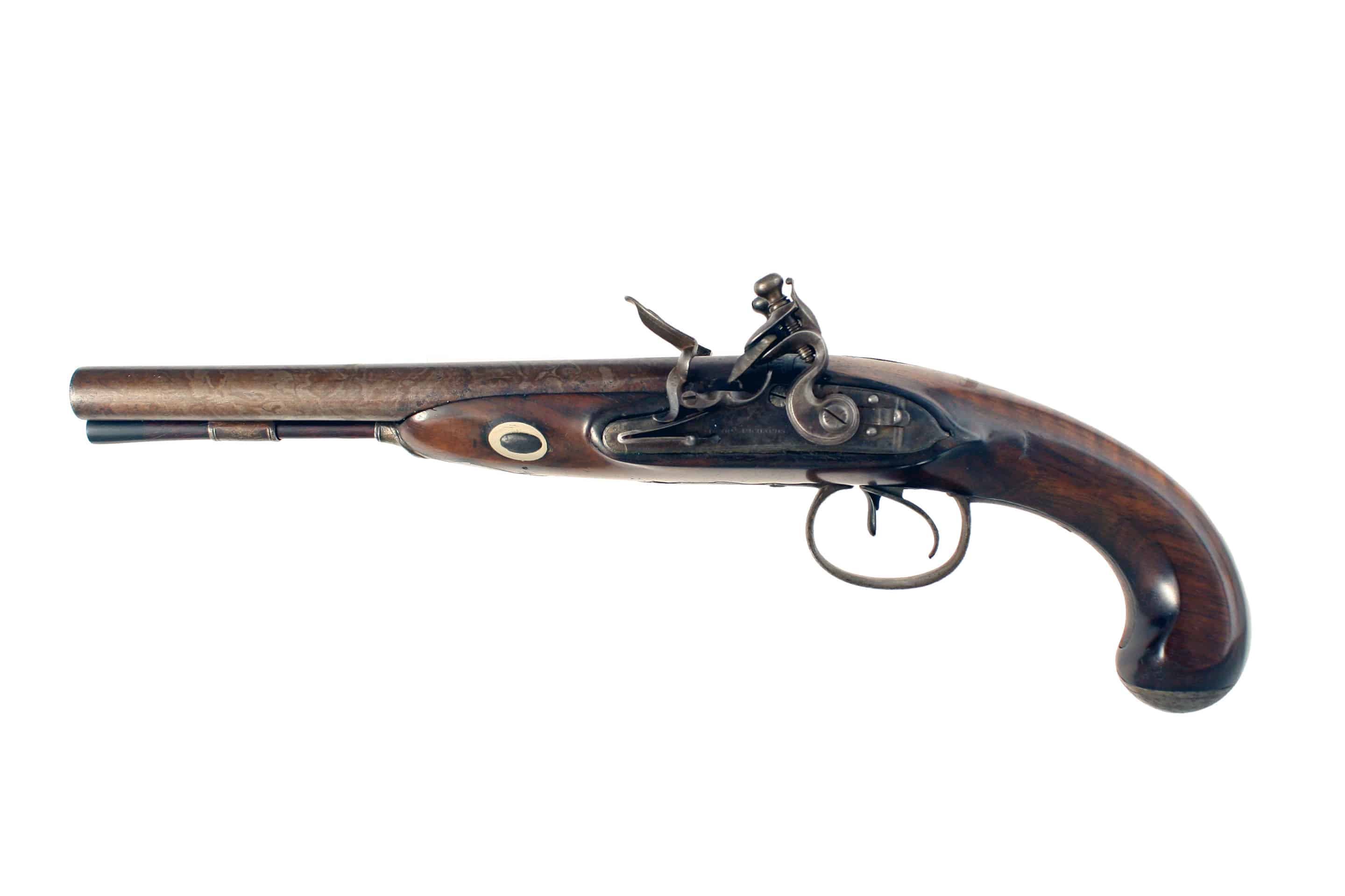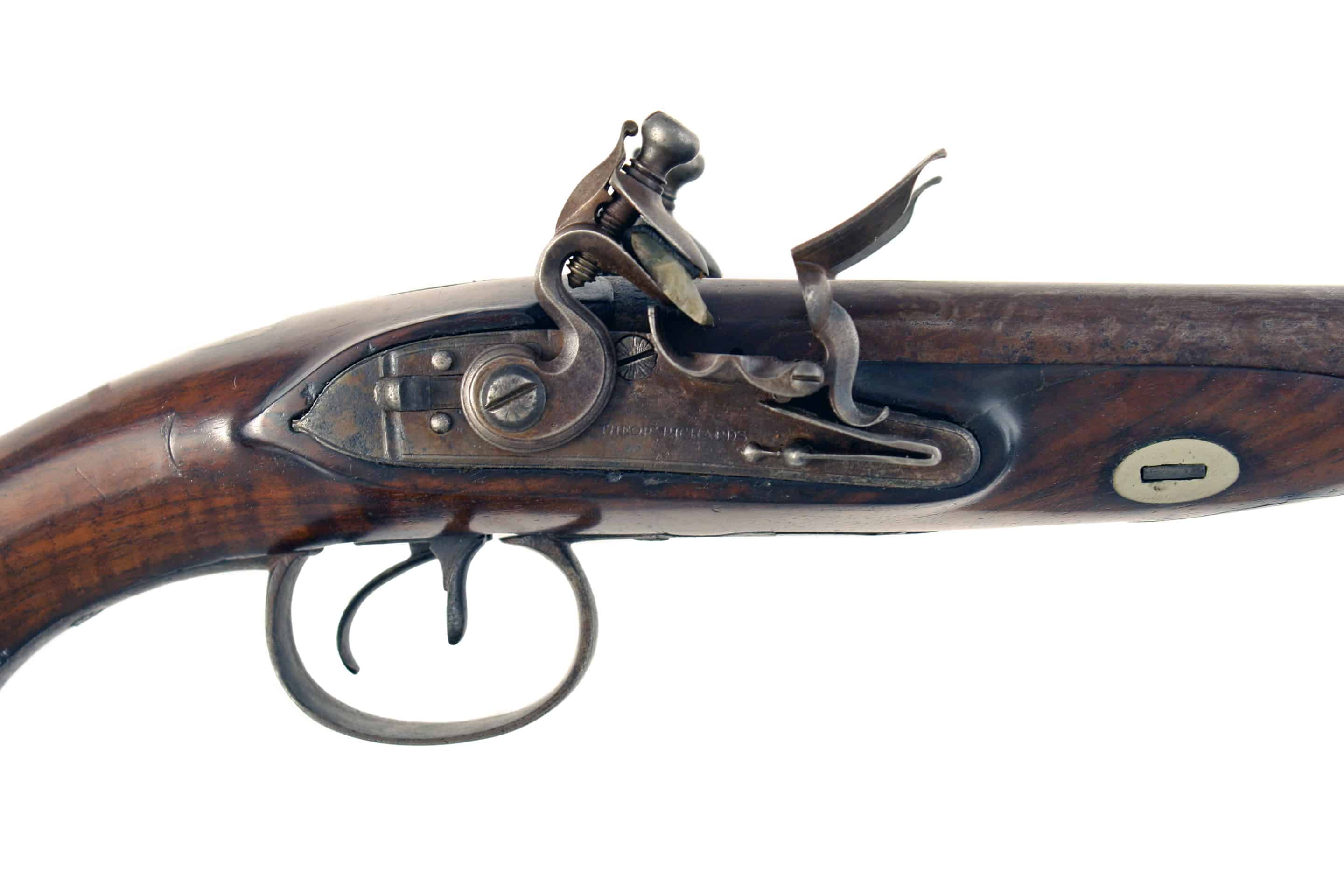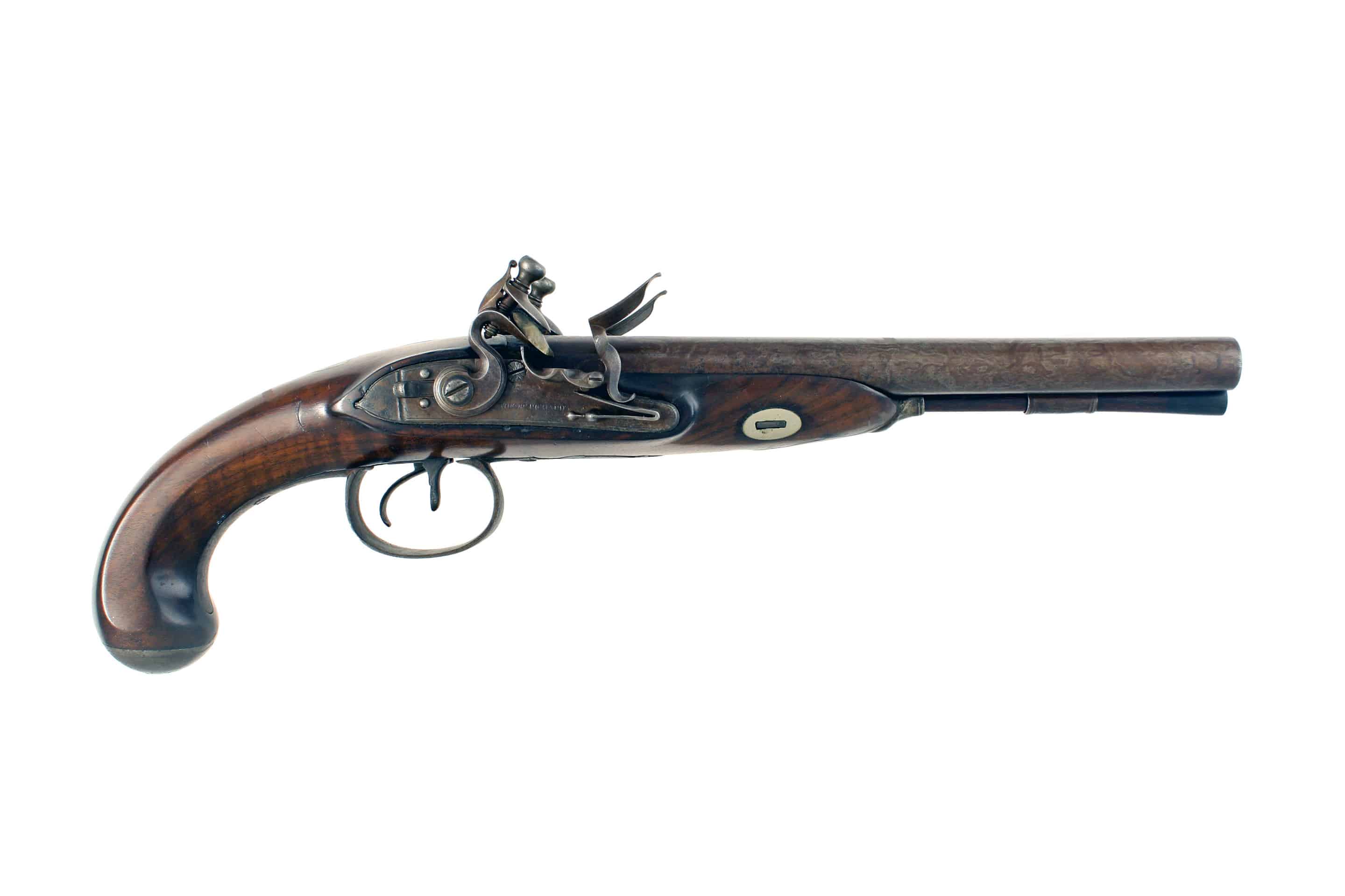 A Sleepy Flintlock Carriage Pistol by Theo. Richards.