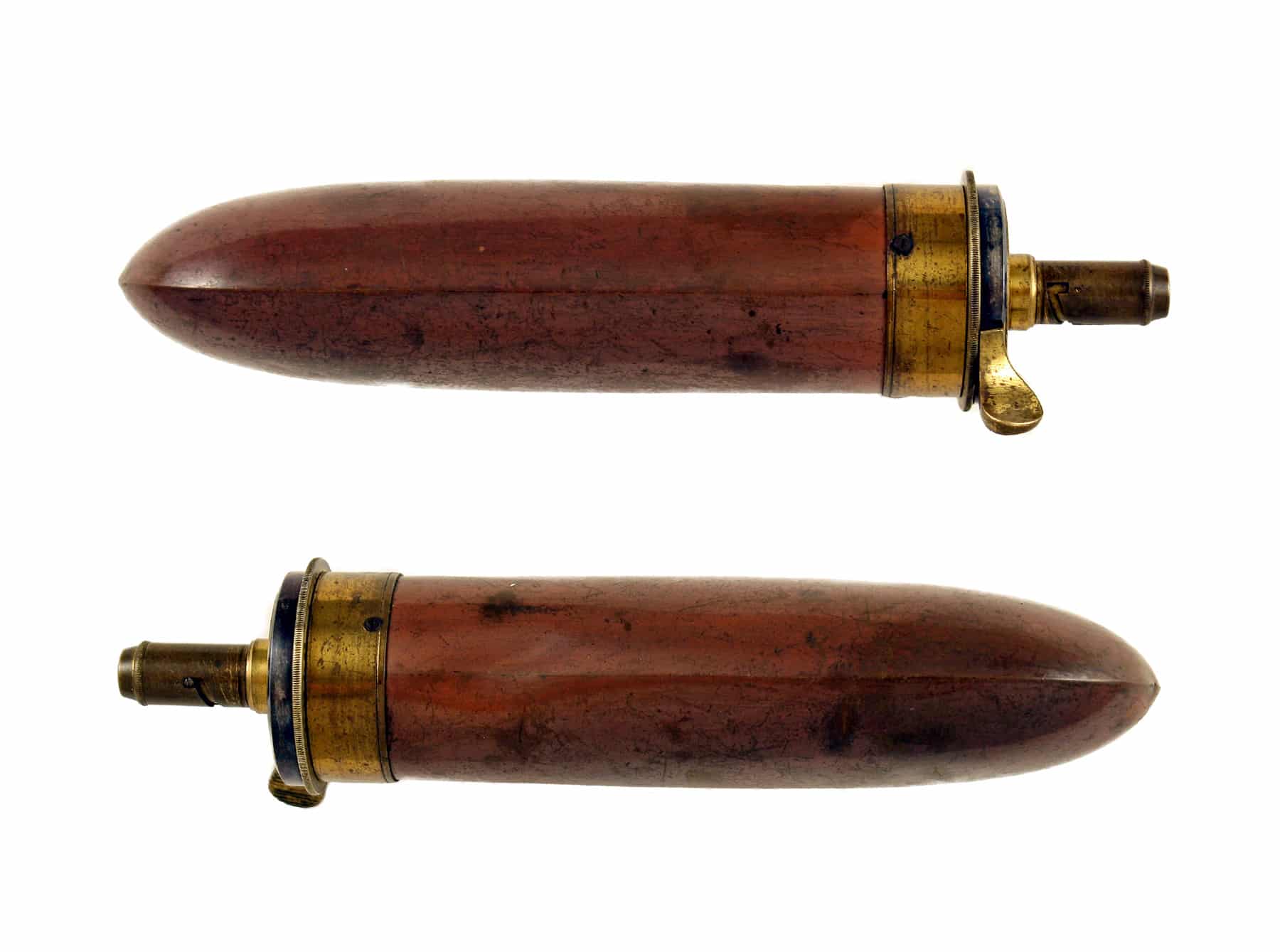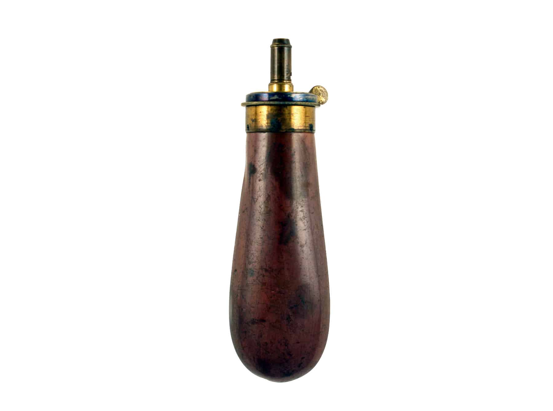 A Plain Colt Type Powder Flask by James Dixon & Sons. With long bag-shaped body retaining much original finish, one small dent near the throat of the flask, blued spring, top stamped ‘JAMES DIXON & SONS SHEFFIELD’.