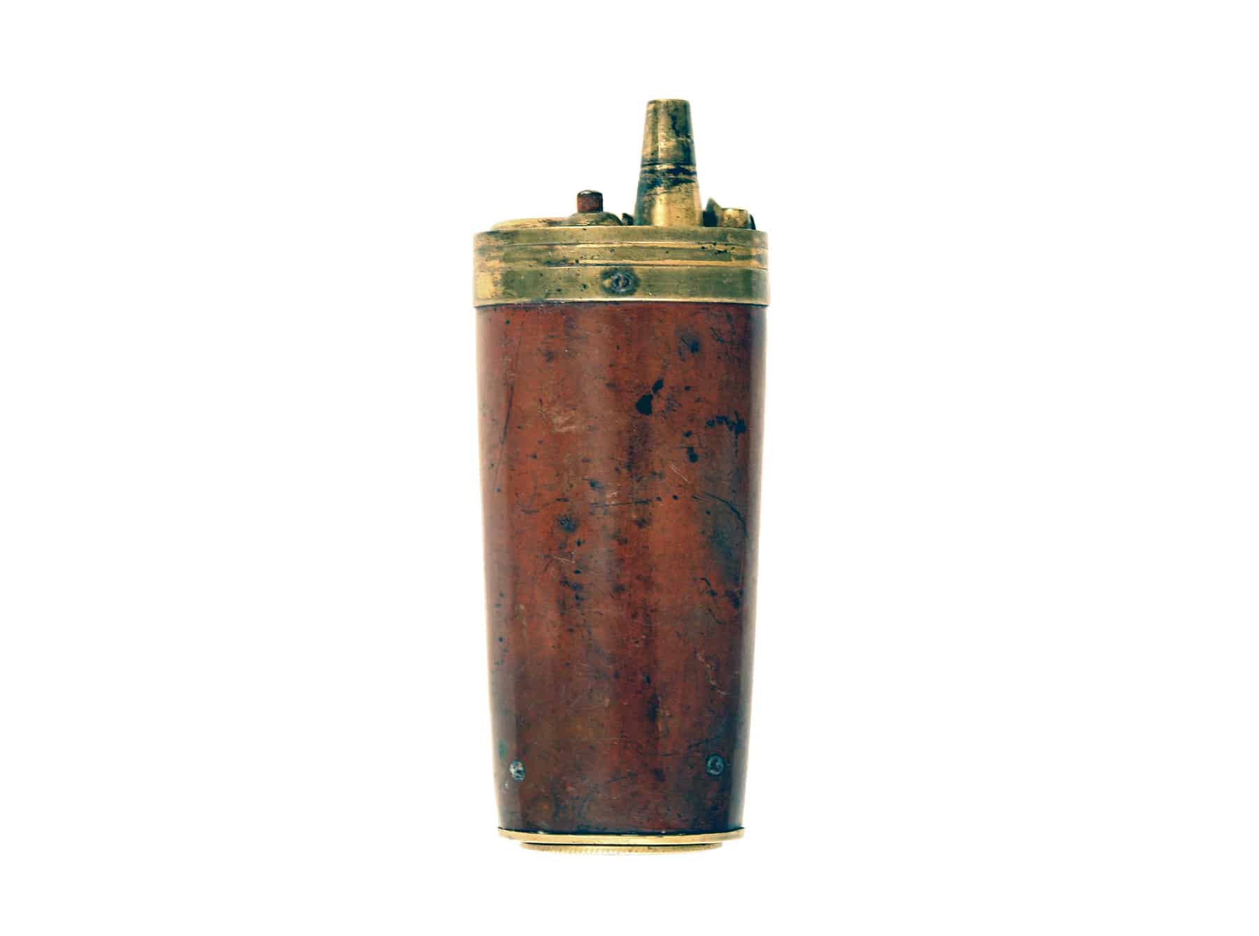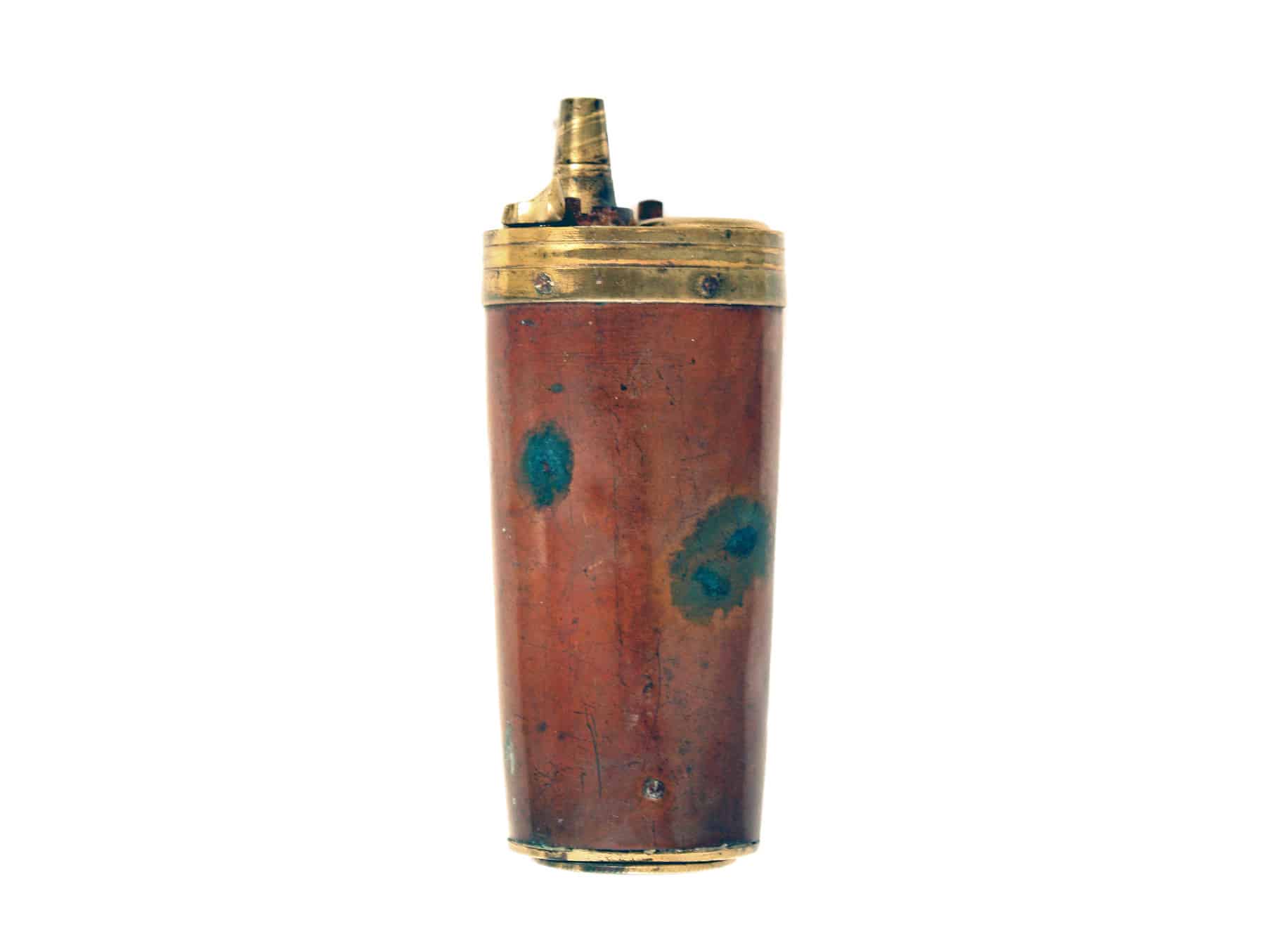 A Plain Three Way Flask. A Plain Three Way Flask of ovoid section, signed pivoting bullet compartment at the top with screw compartment at the base, a couple of small dings to the body, in otherwise good condition, broken spring.