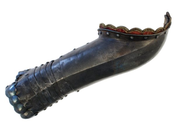 Although pairs of elbow gauntlets were in use by cavalry in Europe in the later 16th Century, particularly the German States, by the second quarter of the 17th Century harquebusiers only used a gauntlet for the left hand; hence the name 'bridle gauntlet', since the reins were held in the left hand, while the right held the sword or pistol.