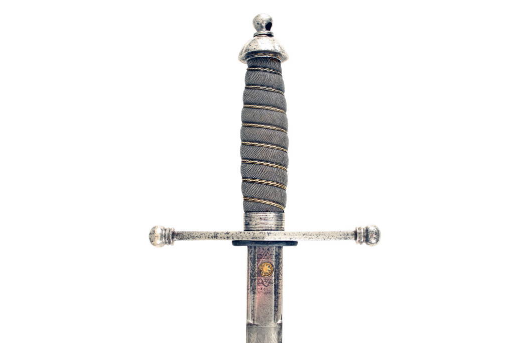 Overall in good condition with light surface staining. The shagreen hilt and silver wires are excellent.