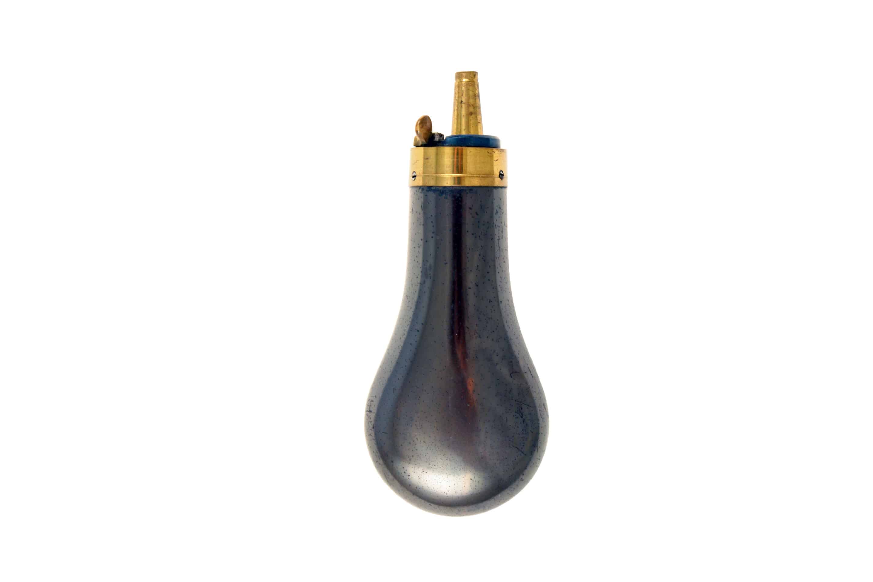 A Near Mint Pistol Flask. Of tear-drop form, retaining most original finish, blued spring.