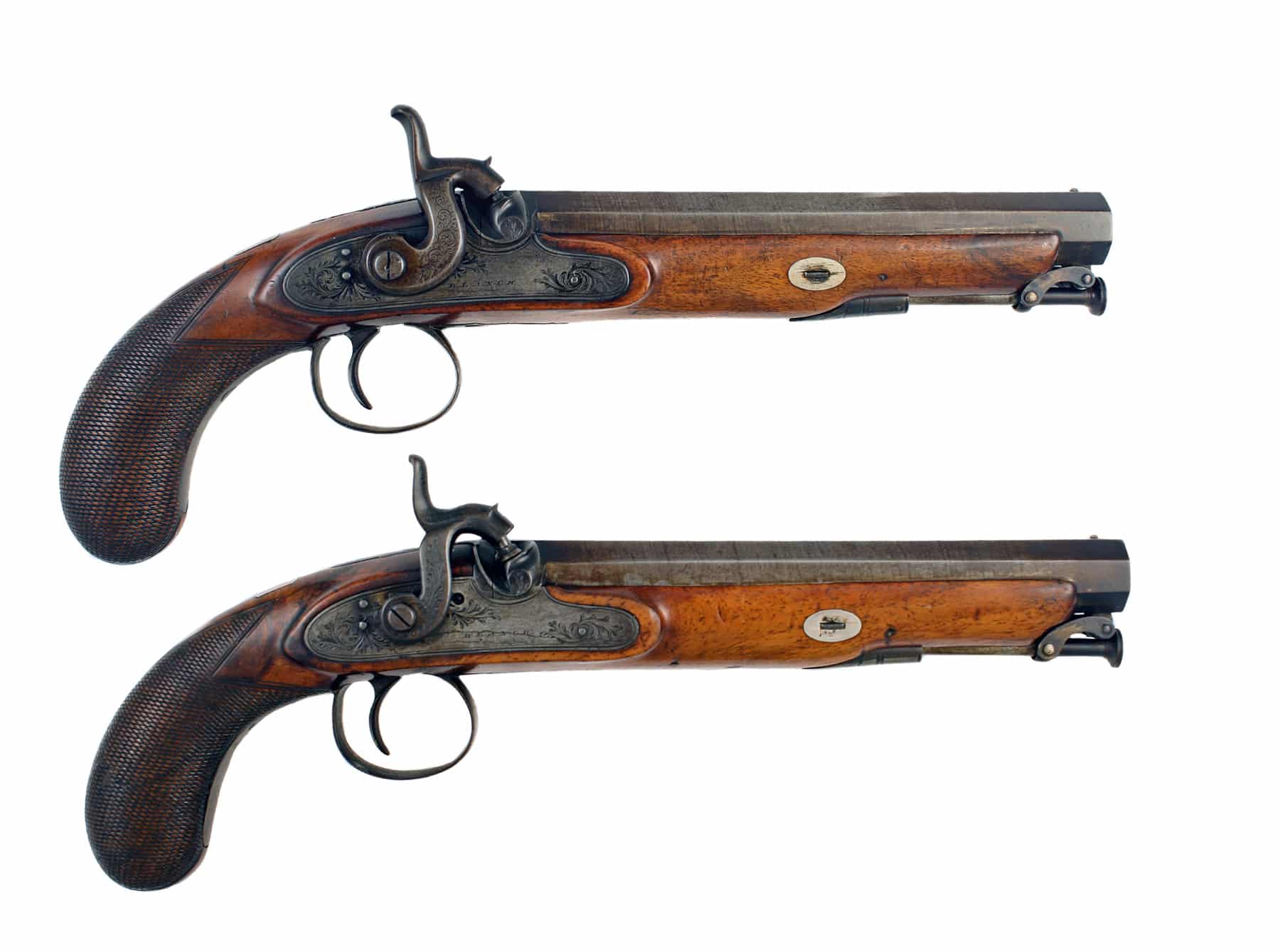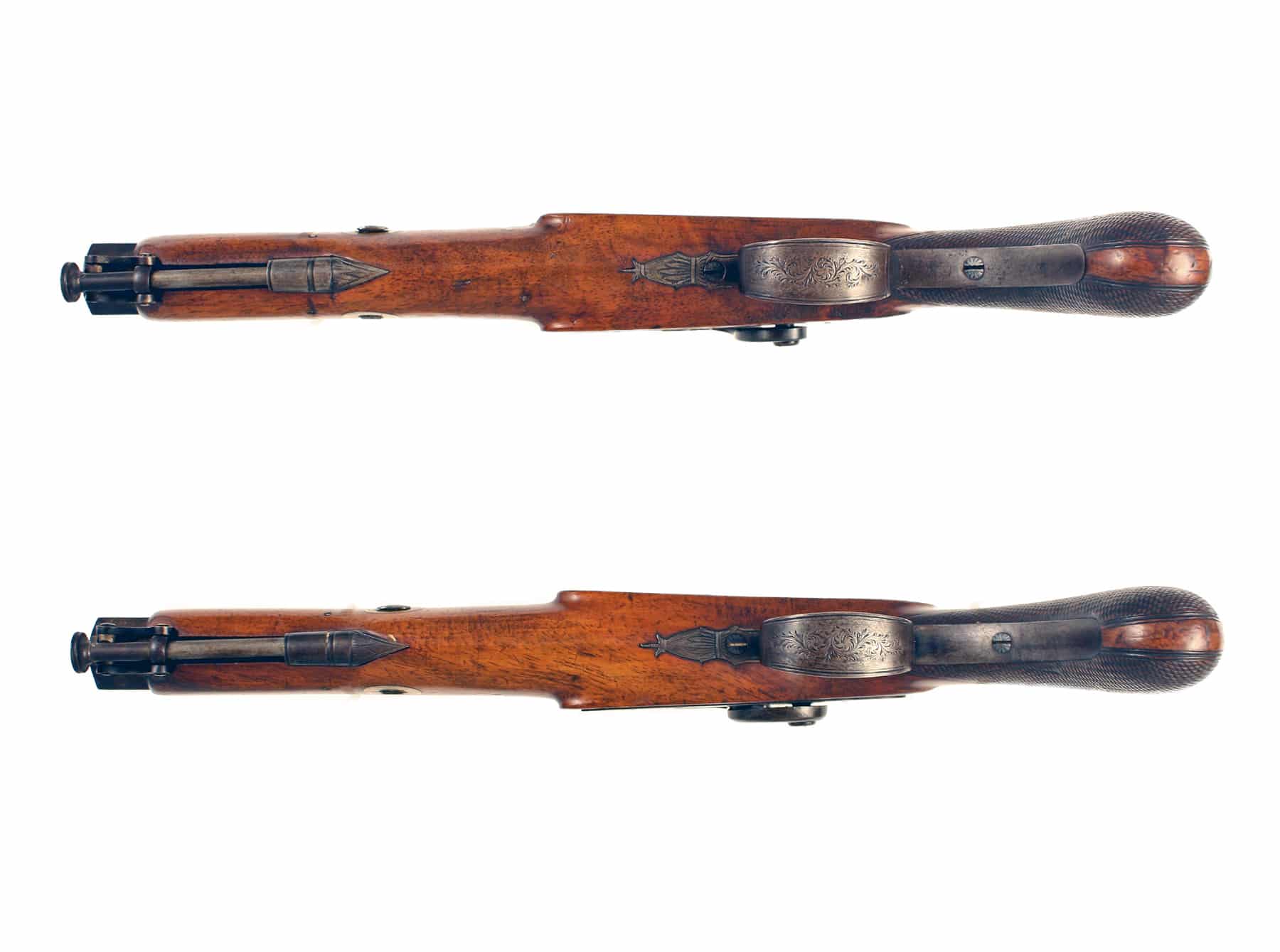 A Large Pair of Tutaneg Silver Mounted Officers Pistols.