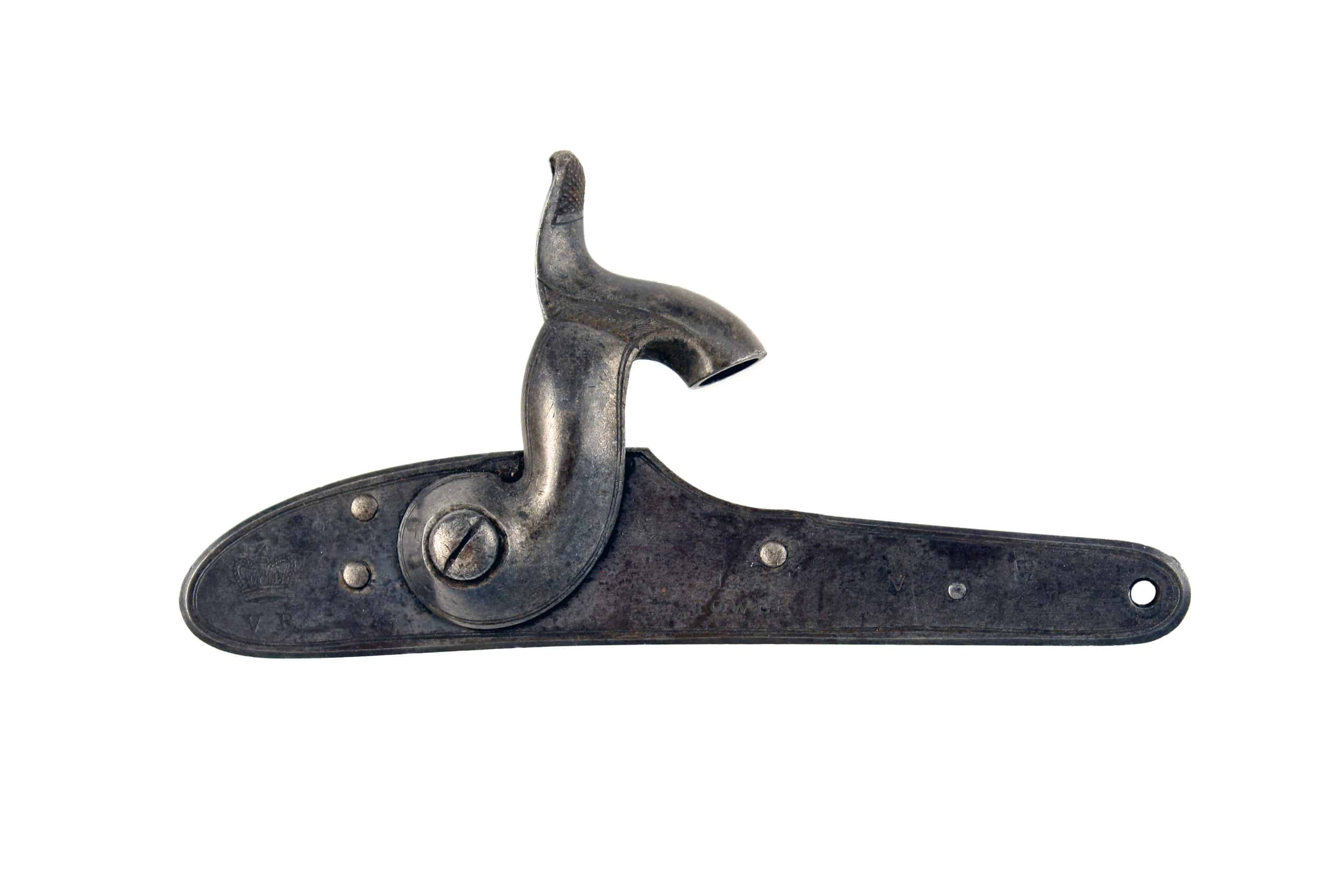 A Percussion Mechanism for an Enfield Rifle, Dated 1855. With flat border engraved lock-plate, engraved with a ’1855’ and ’TOWER’ struck with an Ordnance acceptance mark and Crowned ‘V R’ at the tail.