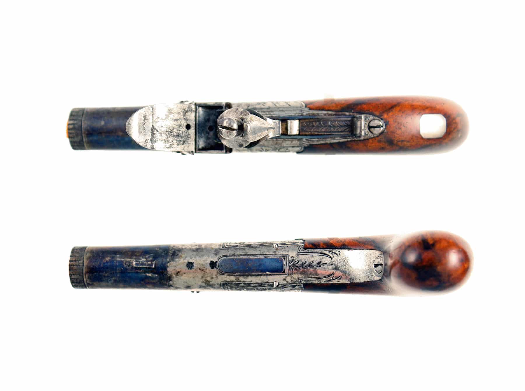 Shop at Banbury, Oxfordshire. Made double barrel, over and under, flintlock pocket pistols.