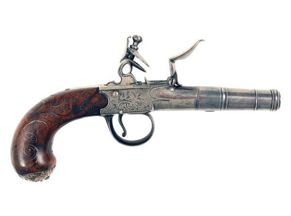 A Silver Mounted Flintlock Pocket Pistol by Parkes