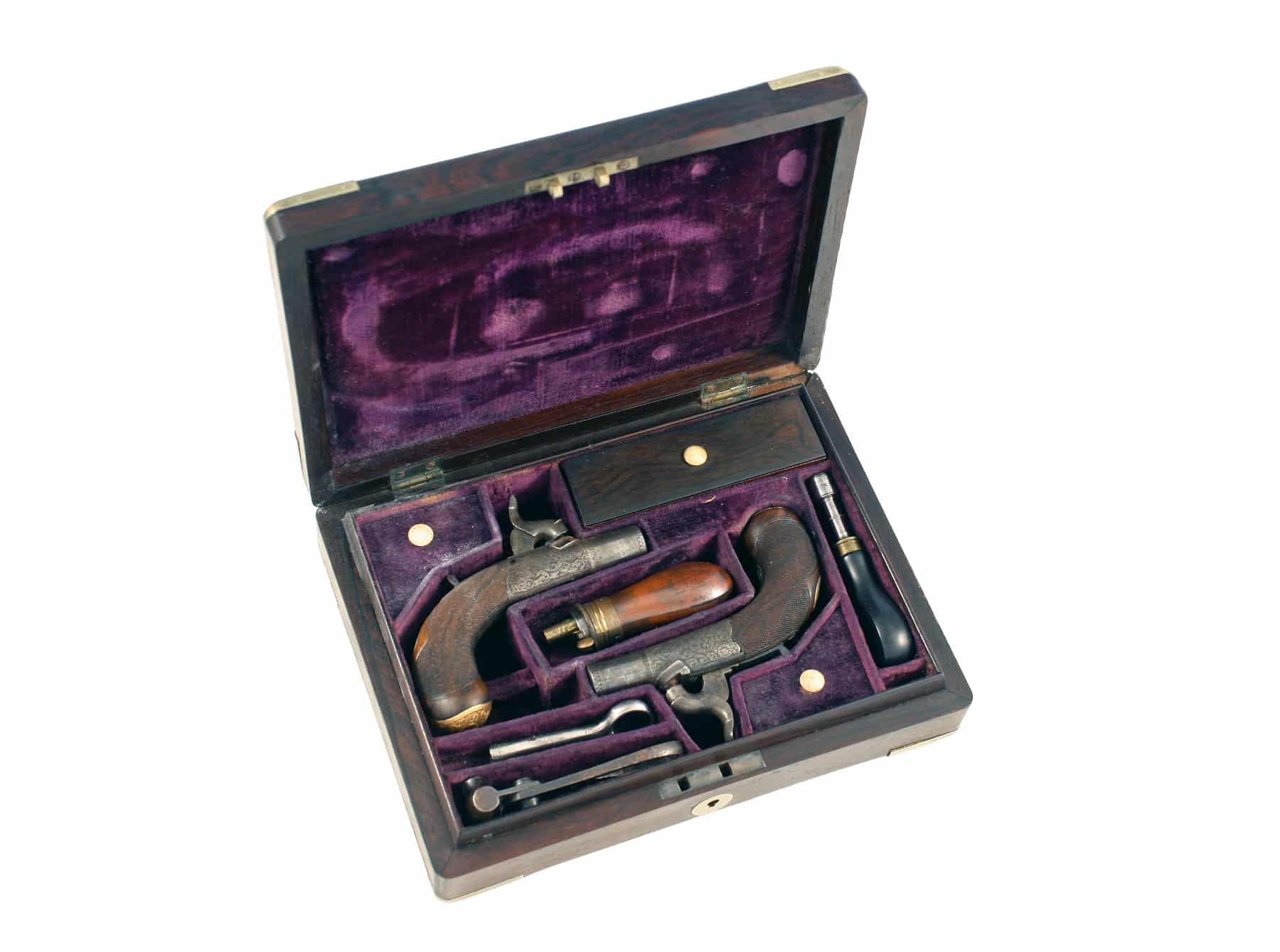 Made cased pairs of percussion traveling pistols. Shop in London.