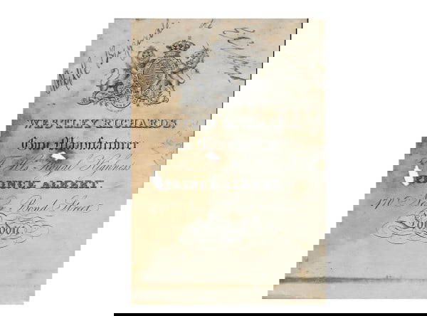 A Westley Richards Pistol Box Label. With, ‘Rifle Brigade’ and a signature at the top of the label.