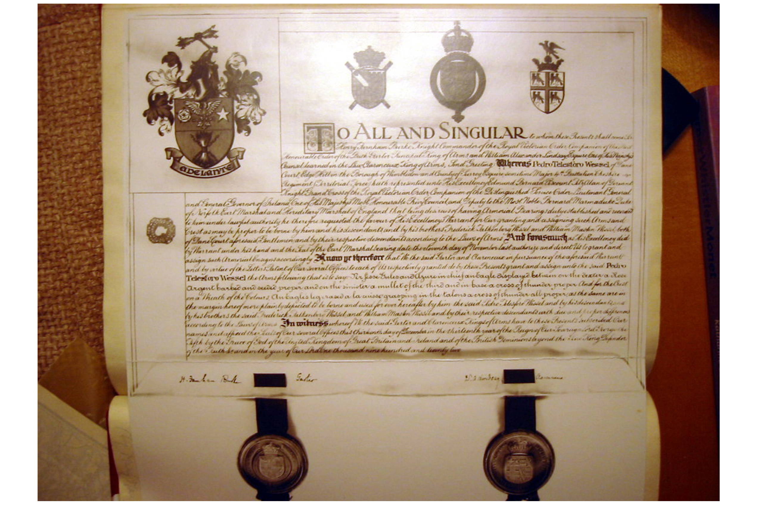Married September 9, 1902 at Bromborough, Cheshire to Kathlee Shirely Forwoord, born September 25, 1875, daughter of Sir William Bower Forwood K.B.E., D.L., J.P. of Bromborough Hall. Cheshire. B. 21st jan: 1840 d 23rd march 1928. And Mary Eleanor Moss. B; 7th Sept: 1841. D: 24th Dec: 1896. Privilegium Sacelli domestici granted by Pope Pius XI. by brief dated 18th May. 1922. Received Patent of Arms H.C. 13th Dec: 1922. On his retirement purchased Apley House, Grayshott, Hampshire. (1931).